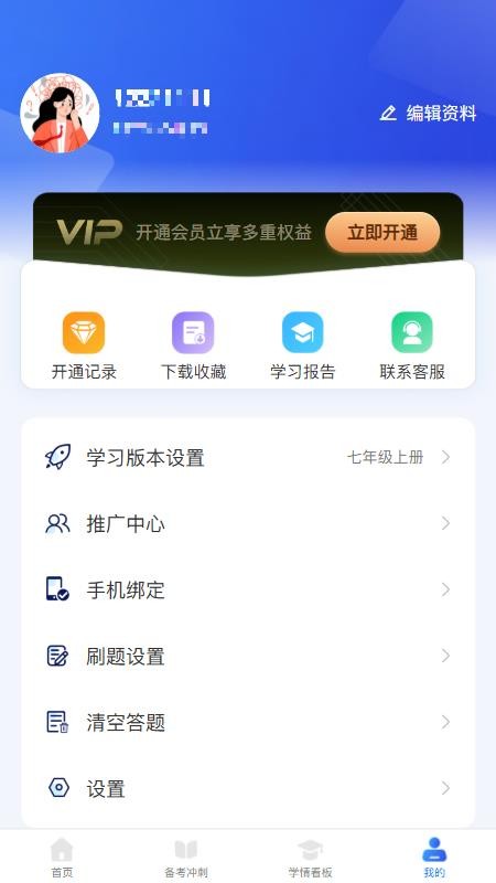 将用户的学习天数、答题数量、正确率等各项数据实时统计,可随时掌握最新的学习数据。