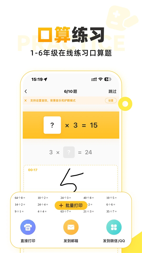 口算题目覆盖学龄前及小学各年龄段学生,其中口算、竖式及单位换算均可手写作答。