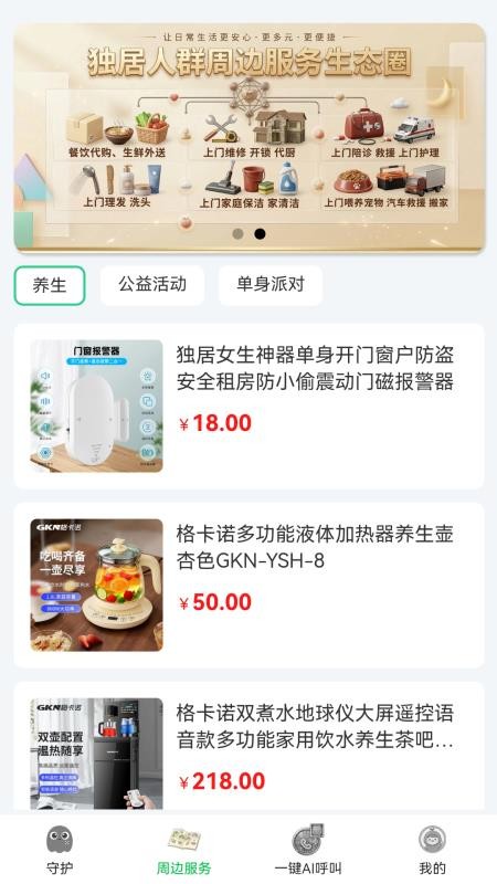 安喜签app支持用户轻松实现独居人群的签到报平安,有效进行安全守护,添加紧急联系人就可随时签到打卡,有效发送短信给紧急联系人,更好的进行定位追踪,实时进行安全预防;而且也可以对周边服务来进行查看,轻松购物下单,随时呼叫上门服务。