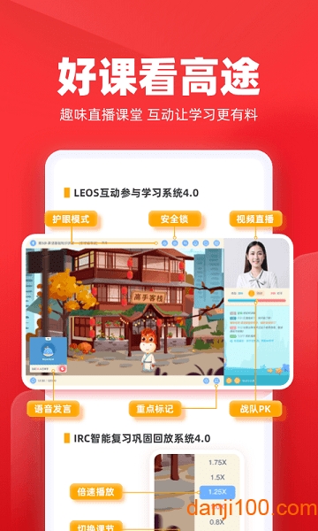 是“跟谁学”旗下专注于中小学的K12在线教育机构,致力为 3 到 18 岁孩子提供优质的教学产品和服务。高途课堂最新版为广大学生提供文字、语音、视频等多种互动形式,通过独家技术手段打造出&虚拟教室&在线学习体验,让在线学习突破原有局限获得真正的学习效果。同时高途课堂最新版还拥有学币制度激励,可以通过这个措施来牢牢抓住孩子注意力,从而帮助孩子更好地参与课堂,提高学习效率,发现学习乐趣。