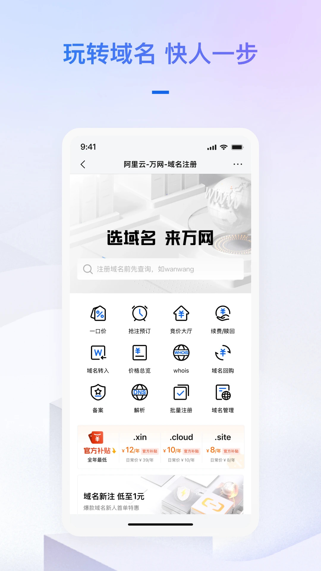 全国第一的域名市场在阿里云APP上线啦~!移动端抢注将给你带来更方便、更快捷的体验。