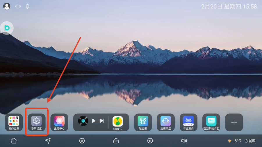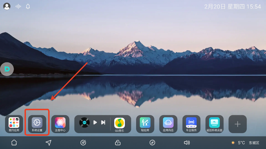 用户点击屏幕下方齿轮图标,可以打开系统设置界面。