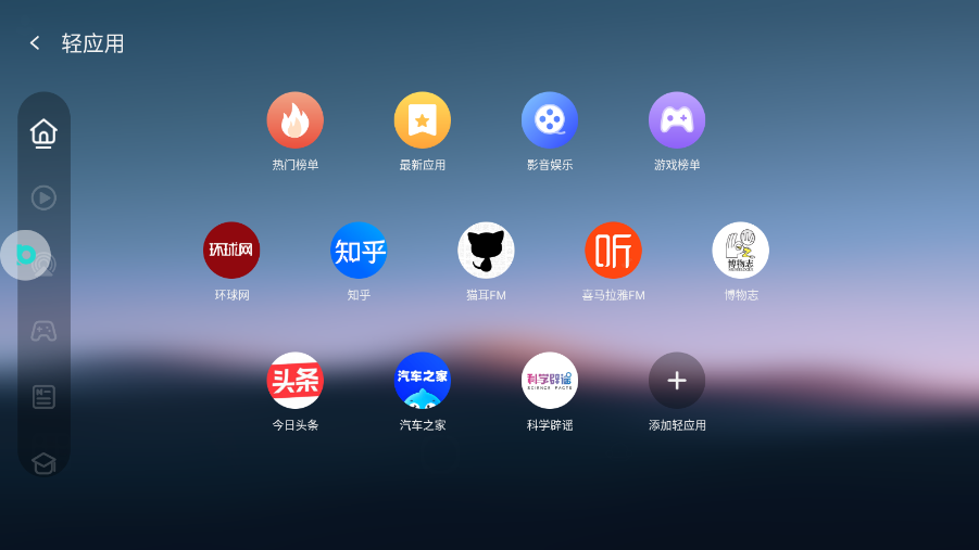 用户点击屏幕下方轻字图标,可以打开轻应用界面。