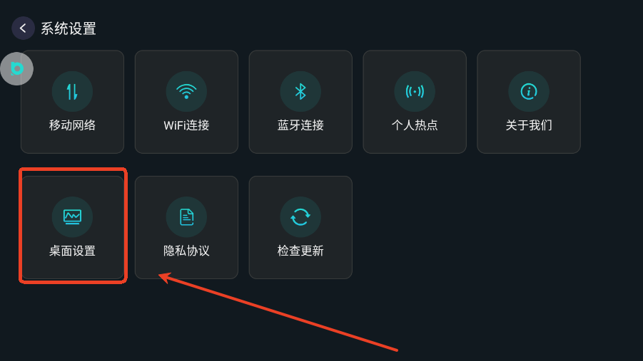 2.找到桌面设置:下滑找到桌面设置功能,进入设置页面。