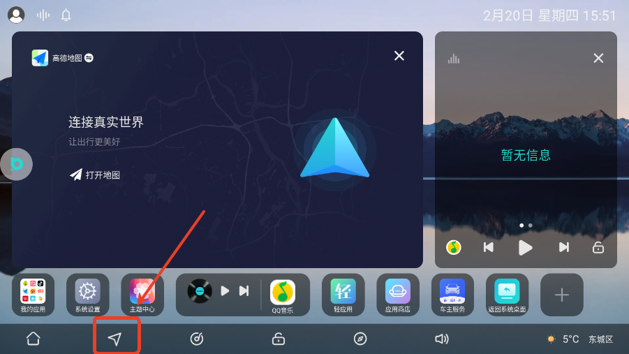 用户点击左下角导航,可以开启车载音乐,但是需要先下载音乐。