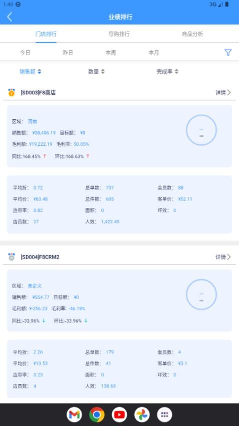 可通过今日、昨日、本周、本月或筛选的方式查看数据信息;