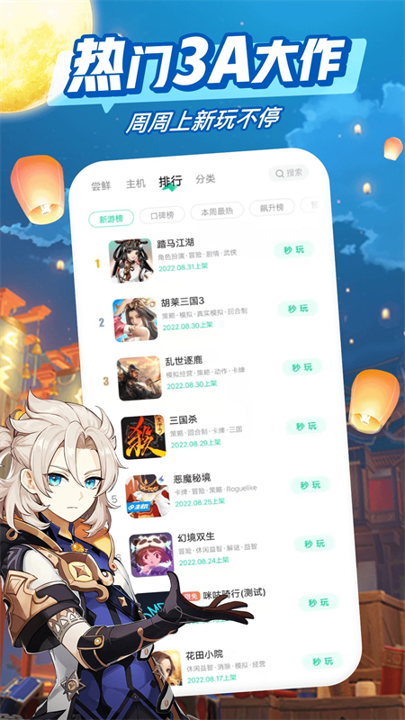 4、选择自己喜欢的游戏,点击下载或者秒玩。