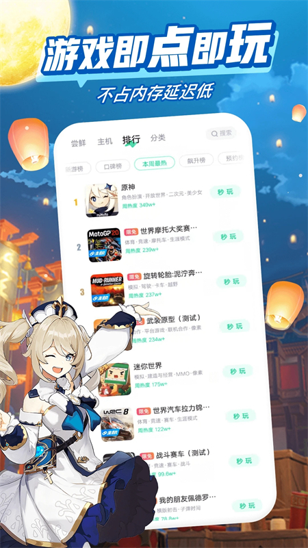 1、游戏免下载安装,不占内存,海量游戏在线秒玩。