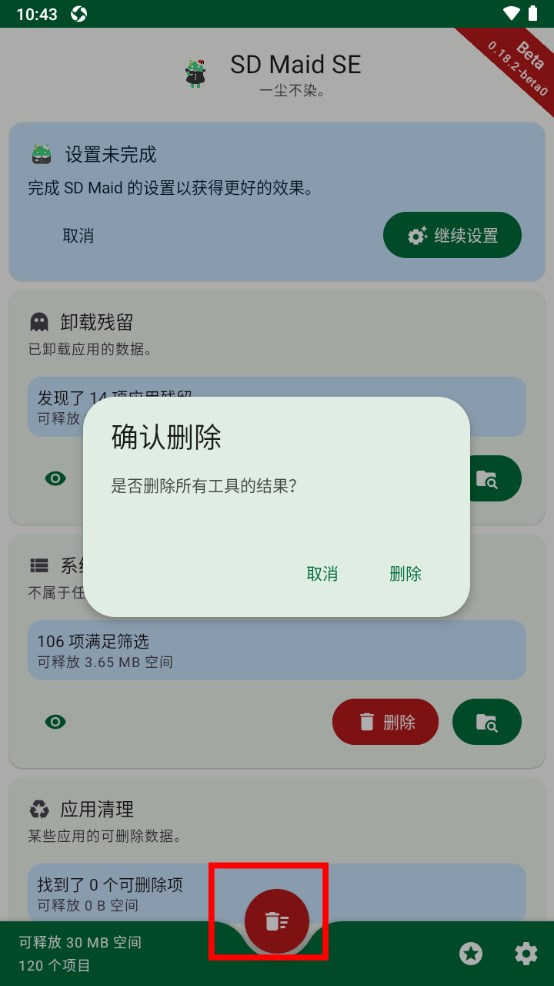 检测完成后,您可以直接点击底部的“清理”按钮来清理手机中的卸载残留、系统垃圾和应用垃圾等垃圾文件。