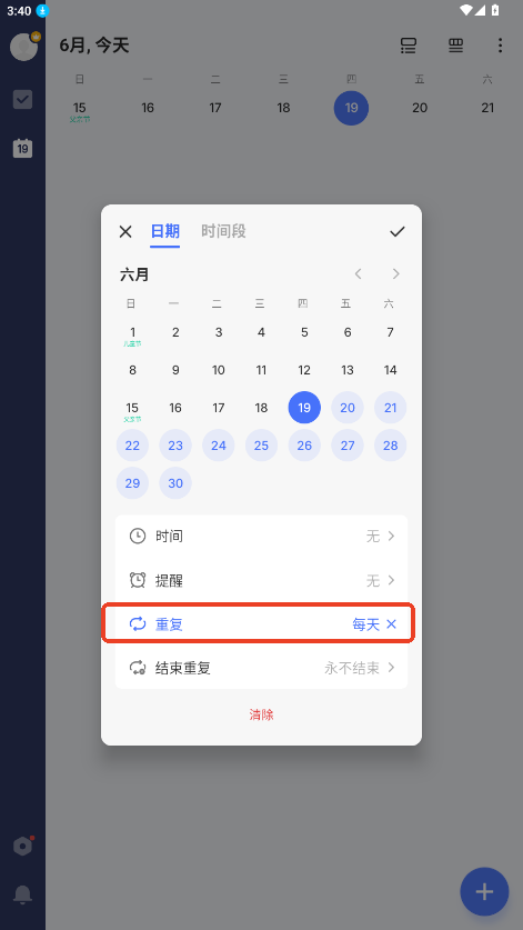 3.如果这项任务,你需要重复每天安排,就设置重复每天时间段。