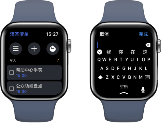 目前支持在手表中快速查看「今天」「最近7天」中的任务。
