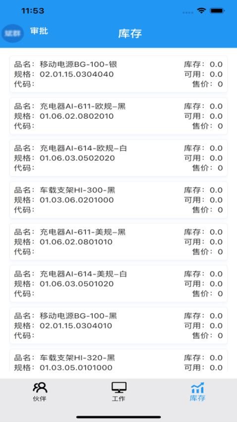 4、在库存页面,可全面查看各个商品的名称、数量、价格等信息;