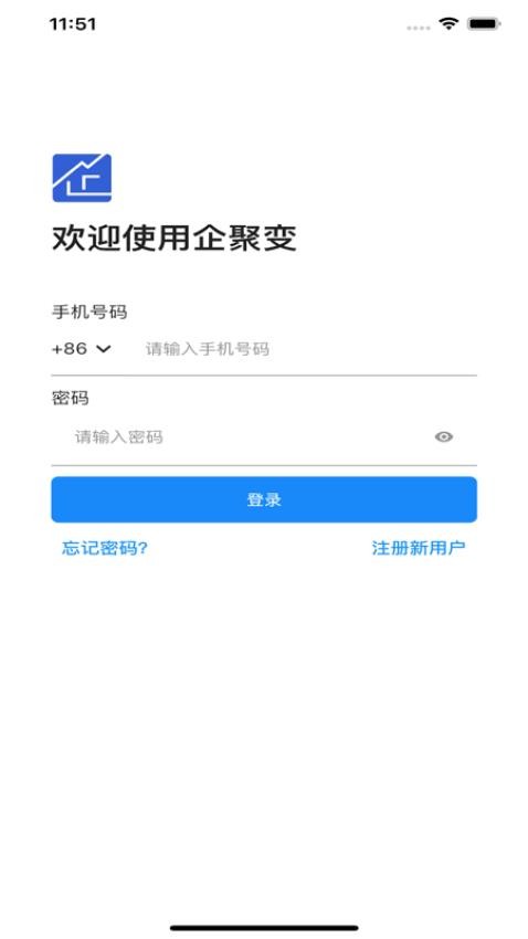 1、在手机上打开企聚变数字化ERP平台APP,即可输入手机号和密码登录;