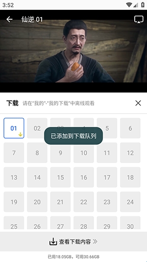 1、在播放界面点击下载选项,选择要下载的内容。