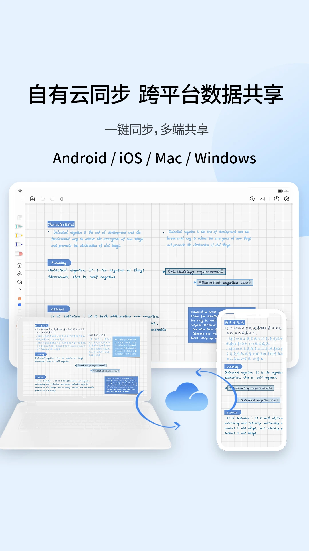 无界笔记、普通笔记、PDF 笔记、手账等笔记形式 导入 PDF、PPT、Doc、JPEG、PNG 等多种文件格式 插入 GIF、图片、音频、超链接等多种常见内容;