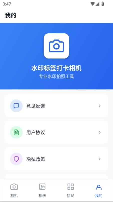 APP方便了用户日常进行水印拍照和自由拼图的方式,轻轻松松就能拍摄记录当下的工作和生活场景,还能精准无误的添加水印信息,满足用户的打卡需求;并且可以轻松进行图片拼贴创作,一站式满足用户的设计需求;感兴趣的伙伴快来本站下载试试吧!