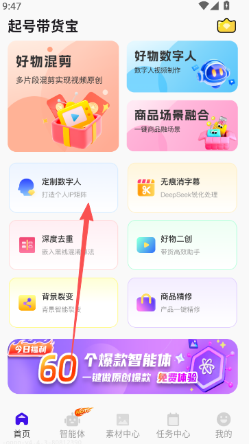 起号带货宝是一款专为短视频带货创作者设计的智能创作工具。它整合海量素材、智能混剪和数字人带货功能,将传统带货制作从耗时耗力升级为一键高效。无论新手小白还是资深新媒体直播者,都能轻松生成高质量内容,实现内容创作零门槛,带货效果直观可见,帮助用户快速完成带货操作,提升短视频商业价值。