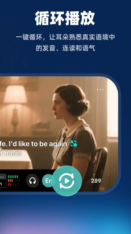 3、用户可以对相关的美剧来循环播放,就可实时播放聆听发音。
