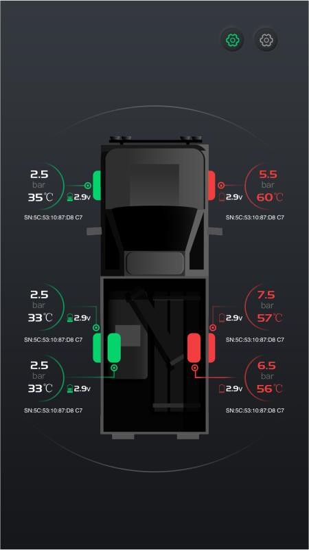 4、让你可以知道汽车当前的胎压情况,可以通过软件设置报警阈值;