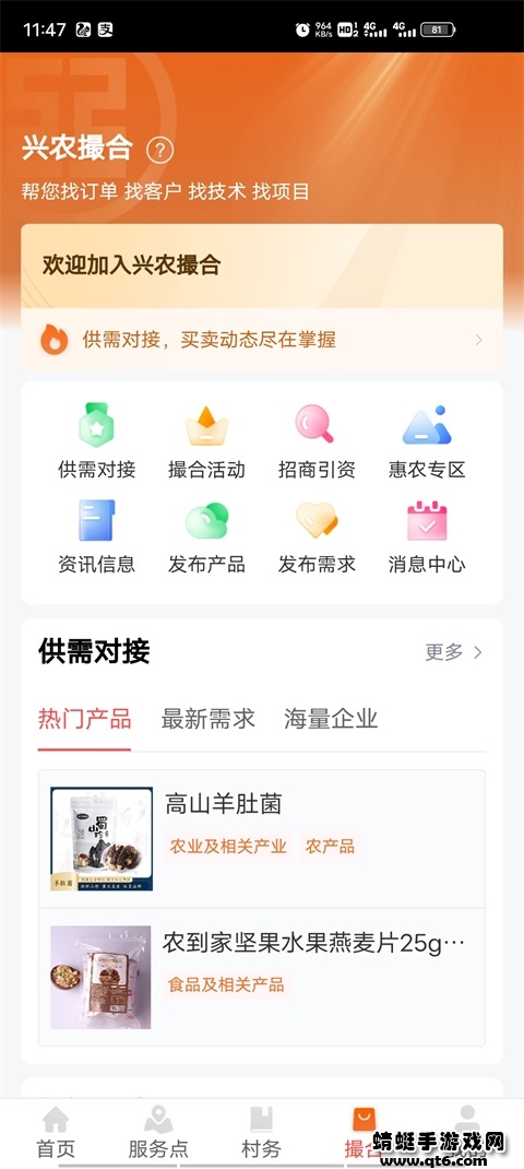 2.撮合服务:提供信息发布、贸易撮合、农业技术学习、价格查询等生态服务。针对农户、农村个体户、新型农业经营主体等。