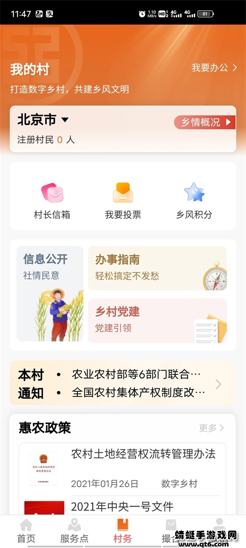 3.村务:为农业农村行政部门、村委会、村集体、村民提供村务公开、基层党建、民主投票、意见直通车等村务服务。
