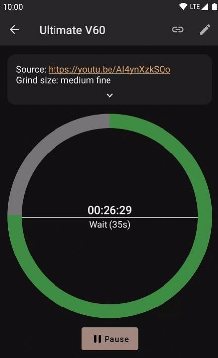 2、手冲计时。帮您进行浸润与注水计时,并以音乐提醒。