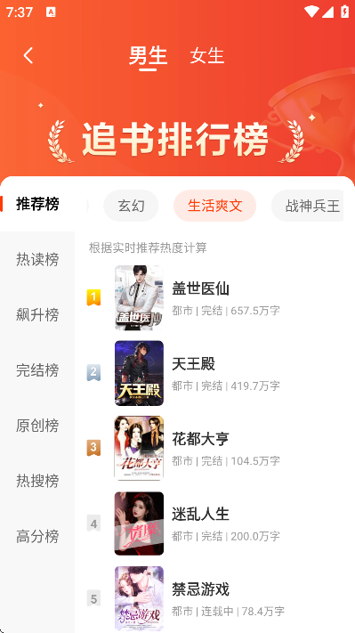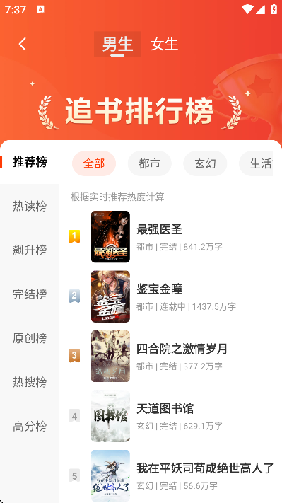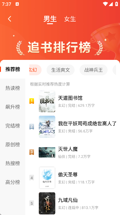 3、涵盖言情、玄幻、都市、穿书等多种题材,分类详细,方便用户快速查找心仪小说类型。