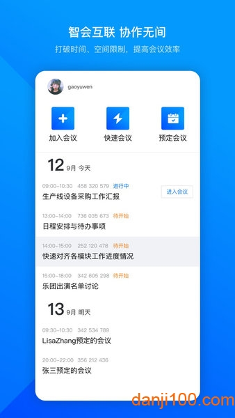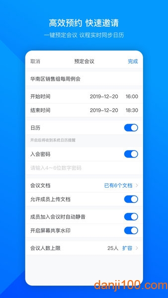 ★界面清爽简洁,一键预约、发起、加入会议;