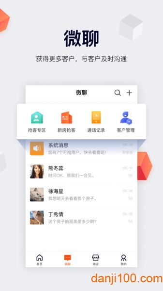 如果你是爱丢三落四的人,移动经纪人,绝壁是居家必备良品,非有不可。比如,前天刚有一个客户给你留了电话,你有了新房源正想联系他,可是,他的号码被你丢了,你,居,然,弄,丢,了…… 手握移动经纪人App,店长再也不担心客户被丢了。一键打开,所有的聊天记录应有尽有,完美!