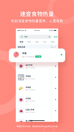 2、海量食物数据库,热量、营养成分随时查,吃得明白