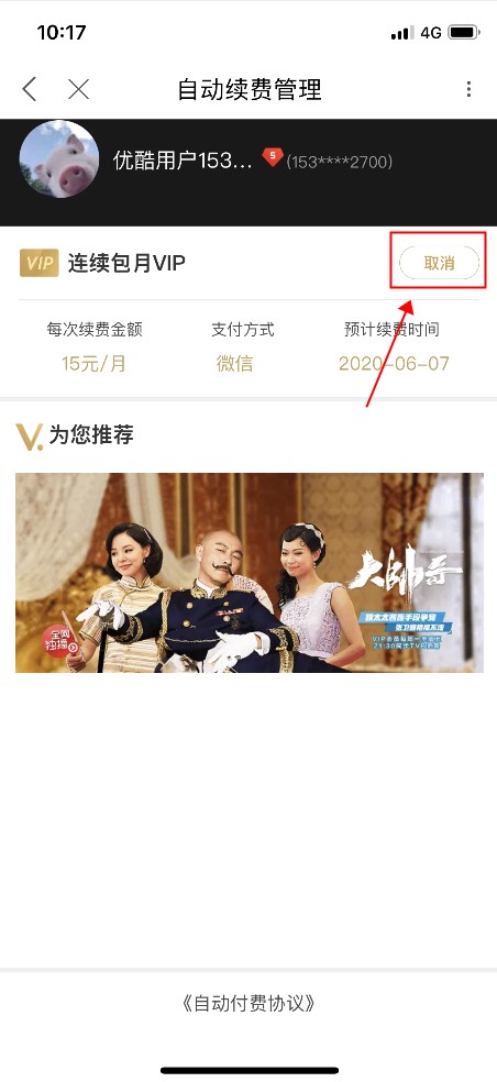 优酷怎么关闭自动续费