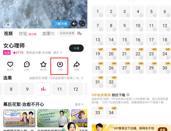2.然后点击下载,选择剧集即可下载。