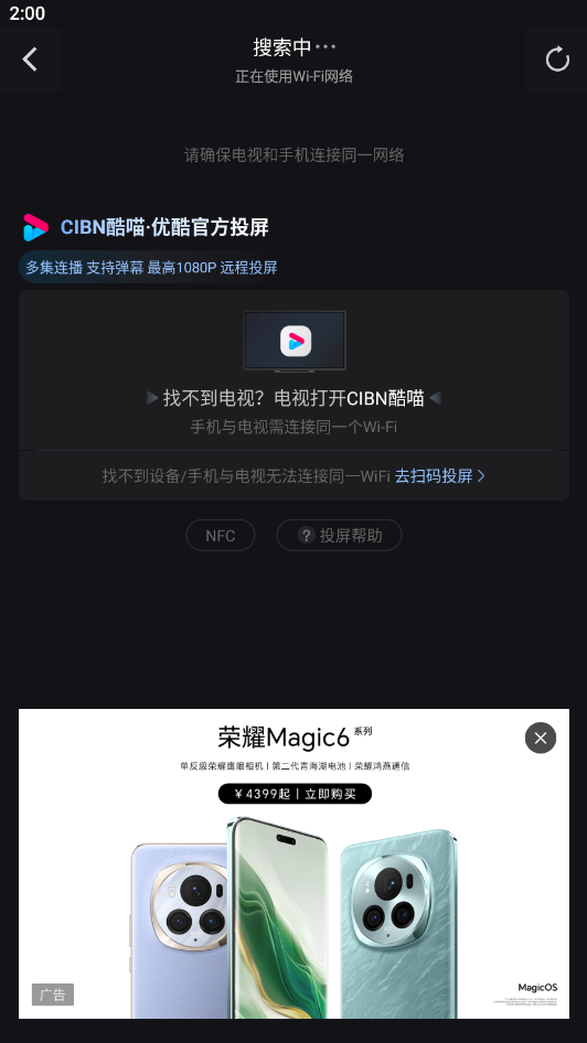 优酷怎么投屏到电视