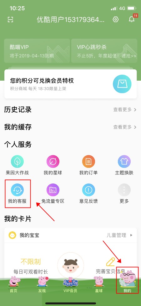1.打开优酷APP-点击【我的】-【我的客服】页面上方您的用户名。