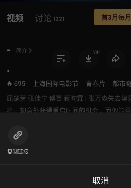 点击视频播放页面的分享按钮。