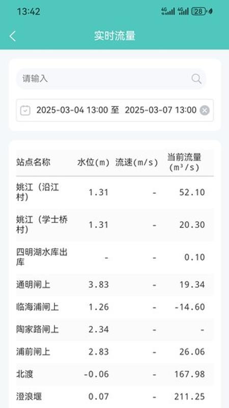 1、打开应用就可以查看实时的站点流量,便捷查看站点的水位。