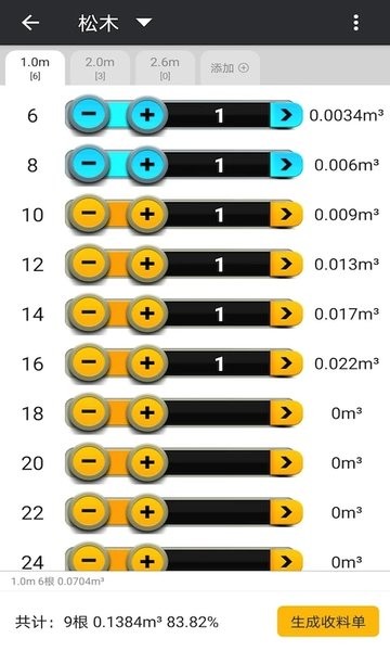 4、数值计算:支持件数、材积、单价、金额四个类型计算,方便您在购买木材的时候可以参考本软件的数据