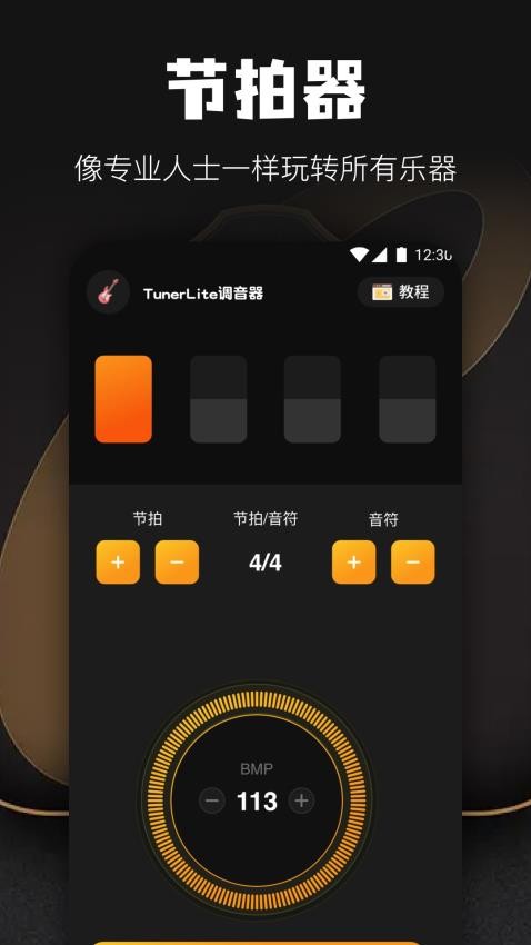 让吉他调音变得非常的容易,用户就能够知道如何轻松调音了,给你更好的调音体验;