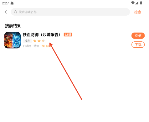 2、在搜索结果中选择一款游戏进入