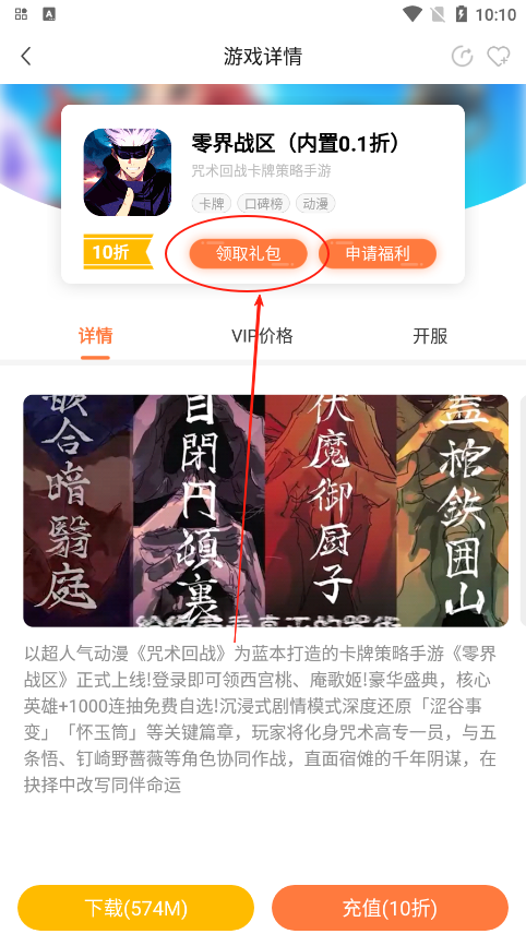 1、我们找到自己想玩的游戏,在详情页下载好后点击领取礼包就可以了