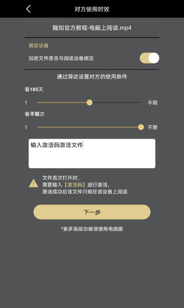 如果该文件是锁定设备的,那么在首次打开时会提示阅读者申请激活,提交申请待卖家激活后就可以看了。如果没有锁定设备,点击“阅读”就可以直接打开了。