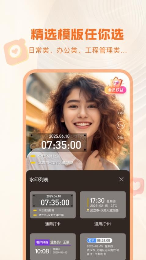 是你以后工作中必备的水印拍照软件,可以满足不同职业拍摄水印照片的需求;