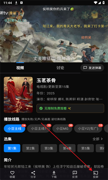 4、点击进入,点击右下角投屏
