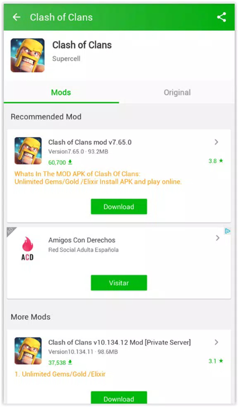 3、对于HappyMod中的每个APK应用程序,你都可以免费检查和下载游戏mod