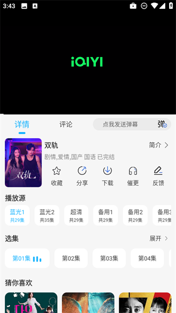 2、接着任意播放一部热播剧集,这里小编以【双轨】为例。