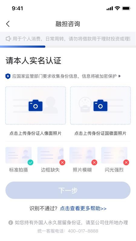 需要用户上传自己的身份证进行实名认证,完成个人实名信息的认证操作。