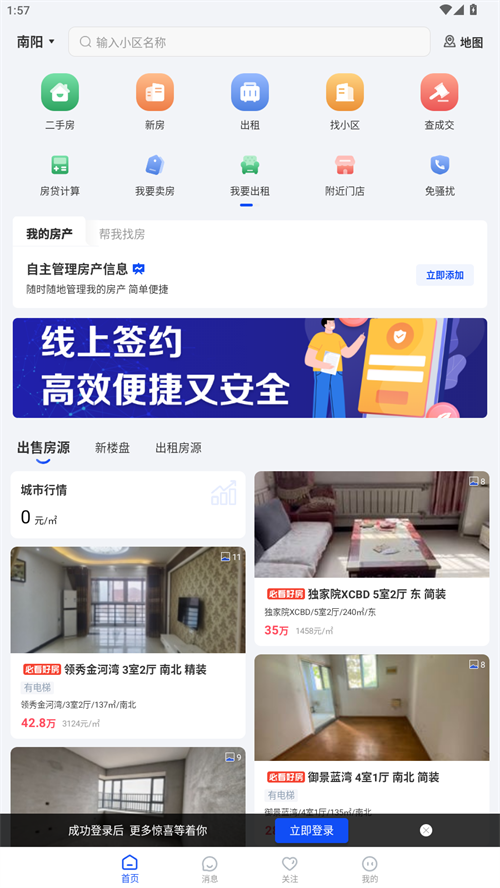 南阳房产网app是一款专注于南阳市二手房、新房买卖租赁的专业房产平台,提供全方位的房产信息服务,其中包括二手房、新房、商铺、写字楼等,并支持用户通过筛选条件来查找心仪的房产,你可以根据价格范围、区域位置、房屋面积、房龄、朝向等因素进行精准筛选,快速找到符合你期望的房产,大大节省你的时间和精力,这款软件为用户们展示很多价格低质量好的租房住宅,更多的交易信息也可以快速共享,打造更便携的租房买房服务。