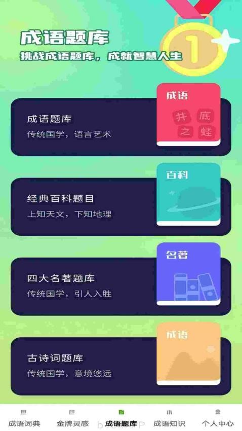 丰富的成语题库,针对不同的知识水平提供多样化的挑战,帮助用户循序渐进地提升成语能力。