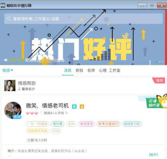 【实力认证】超过2万多名倾听者,情感咨询师、婚姻家庭导师 、心理咨询师 、过来人、同性友人 、海归、人际关系达人、亲子教育达人、职业规划师、律师等,总有一个能帮你!