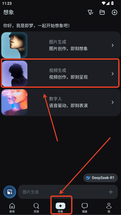 1.进入想象的视频生成板块。